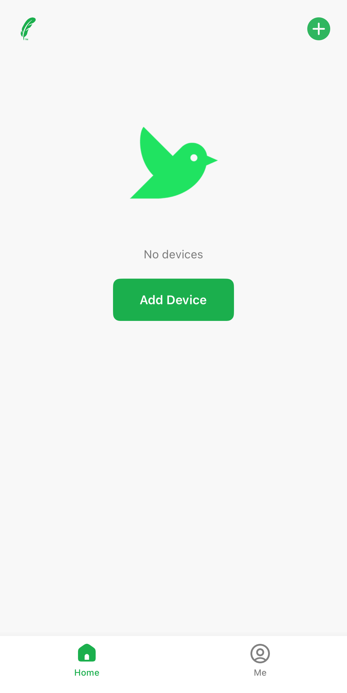 So now you need to open up the Green Feathers app on the phone and you should have a screen that looks like this -